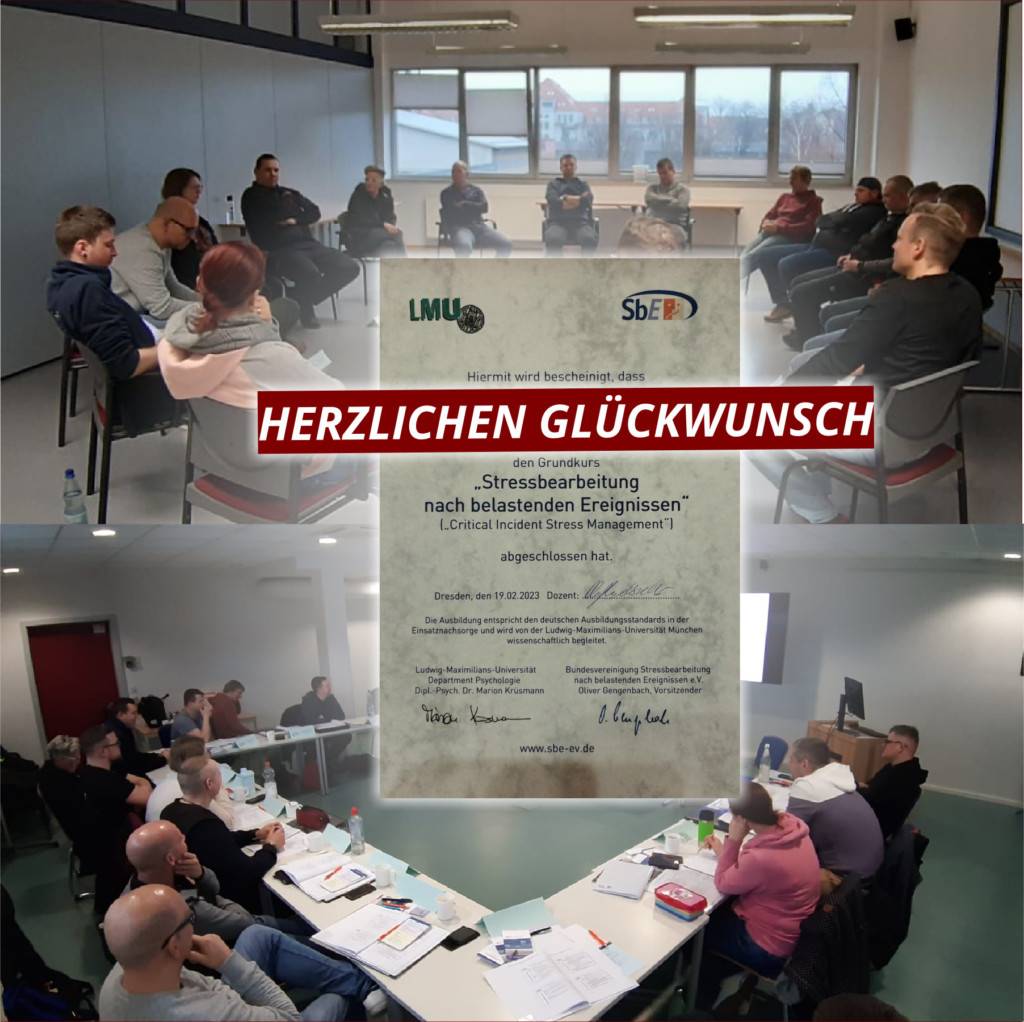 An insgesamt zwei verlängerten Wochenenden im Februar dieses Jahres fand die Ausbildung Einsatznachsorge für Einsatzkräfte nach SbE (Streßbearbeitung nach belastenden Ereignissen) in den Modulen I und II in Dresden statt.